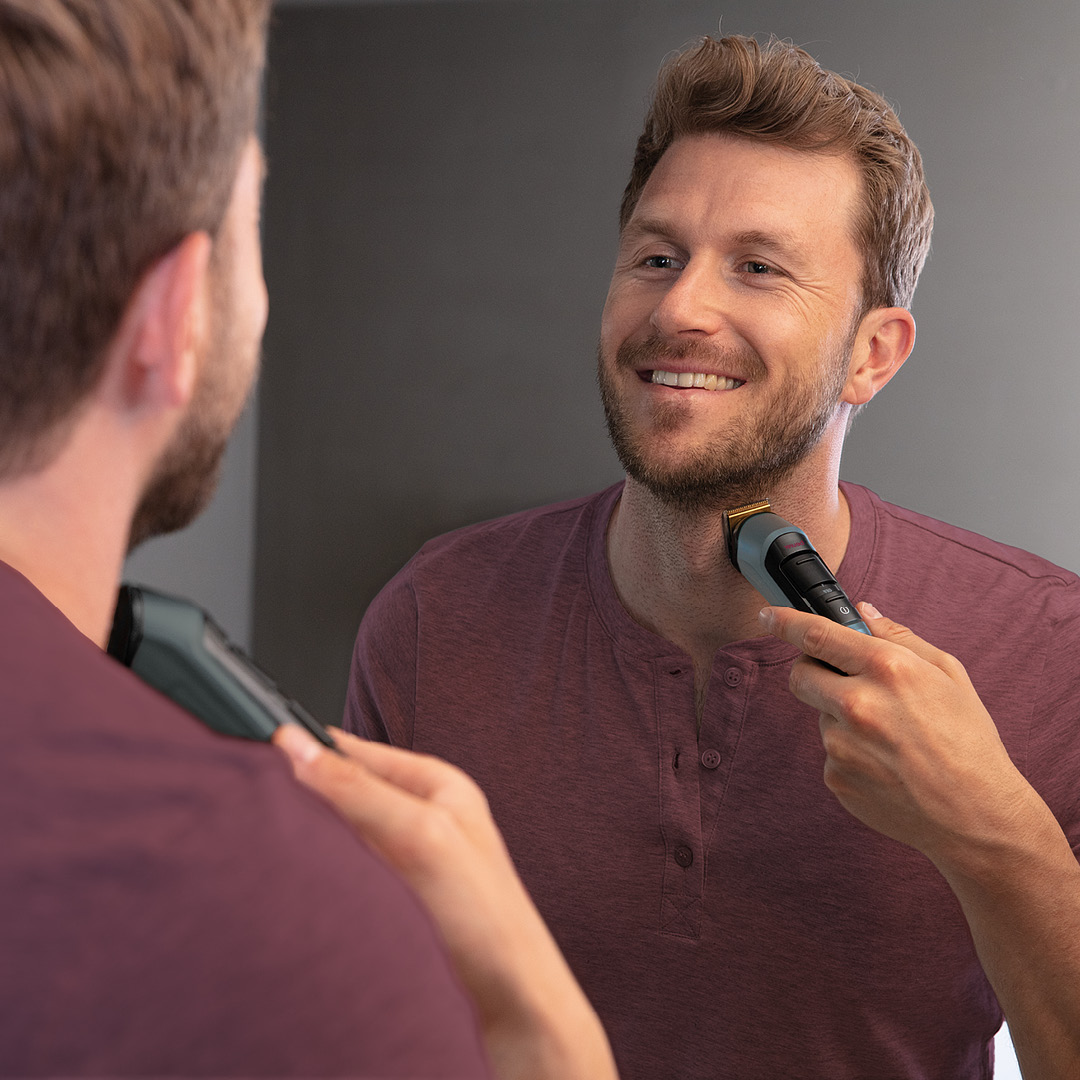 Maskinen leverer høy ytelse med selvslipende rustfrie stålblader belagt med titan for maksimal hudtoleranse og effektiv klipping. Med 11 utskiftbare tilbehør og hele 16 ulike klippelengder kan du tilpasse stylingen helt etter egne behov. Multiklipperen er også vannavvisende (IPX7), noe som gjør den trygg og praktisk å bruke i både dusj og bad.