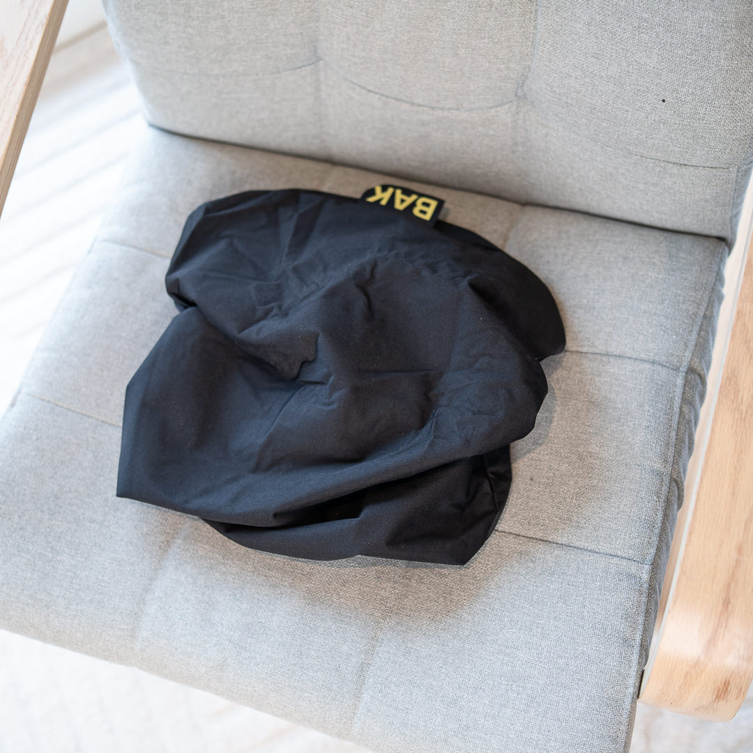 Denne modellen har buet underside, noe som gjør at puten ligger jevnt og stabilt i rullestoler med hengekøye-sete. For rullestoler med fast og plan sitteflate finnes det egne varianter med flat underside.