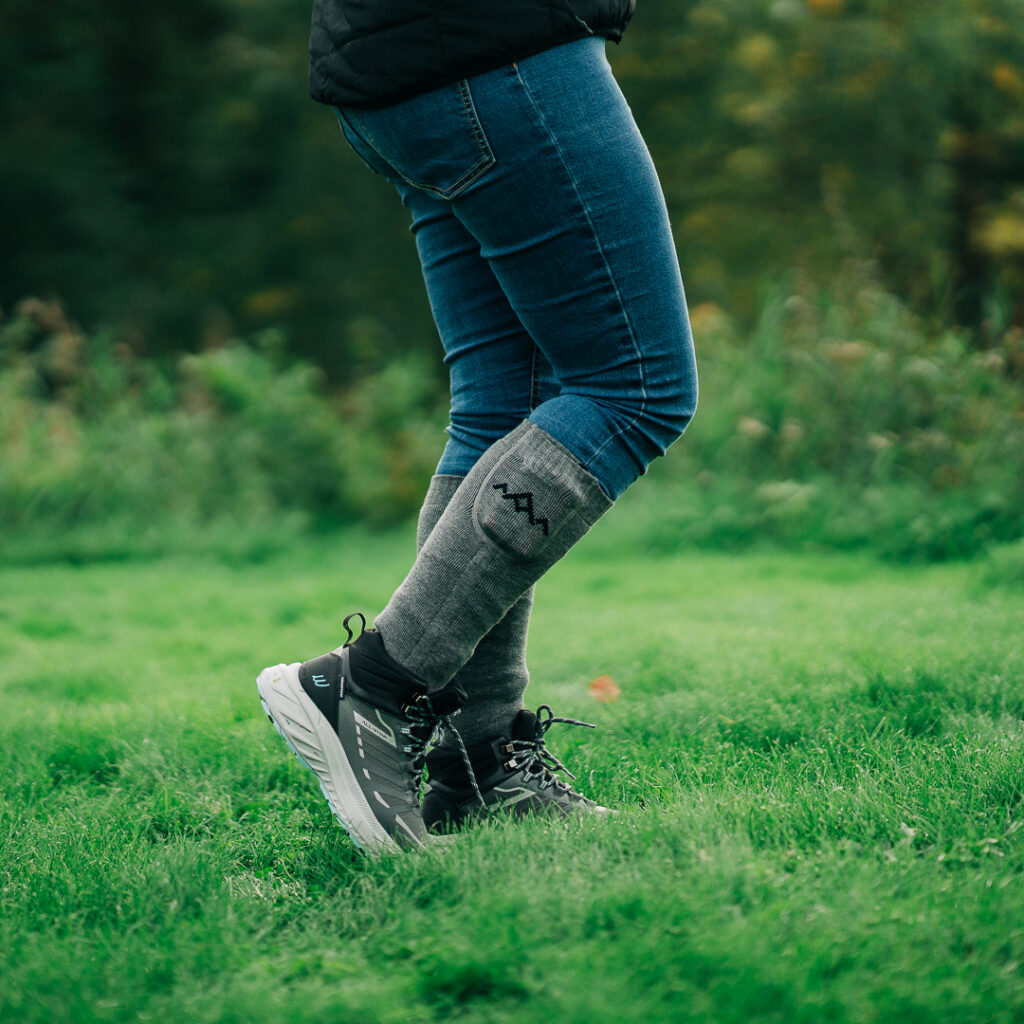 Varmesokker: Et alternativ eller supplement til varmesåler er oppladbare varmesokker. HeatX Heated Everyday Socks V2 ser ut som tykke, gode ullsokker, men med varmeelementer rundt tærne og små batteripakker som festes øverst. Sokkene har tre varmenivåer du kan justere (med en knapp eller medfølgende fjernkontroll), og de kan gi behagelig varme i opptil 8 timer på laveste nivå. Fordi de er laget med ullblanding, isolerer de godt selv uten at varmen er på. Faktisk bemerket testpanelet hos friluftsmagasinet Jeger.no at sokkene er tykke, komfortable og overraskende varme også uten strøm. Når varmen skrus på, omslutter de tærne i en jevn, lun temperatur. Denne modellen endte opp som testvinner hos Jeger.no med 9/10 poeng, noe som sier sitt om hvor effektive de er til å holde føttene varme gjennom en lang dag ute i kulda.