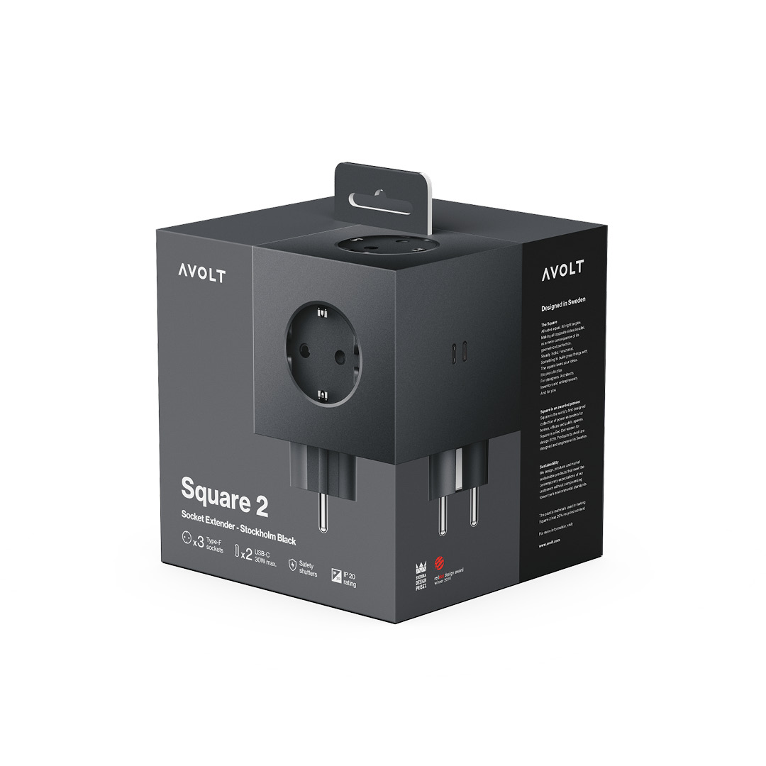 Stockholm Black er klassikeren i Avolts sortiment. Den svarte finishen gjør Square 2 tidløs og anvendelig i alle miljøer, fra hjemmekontor til stilrene stuer. Med tre strømuttak og to USB-C-porter kan du lade og koble til flere enheter med både kraft og stil.