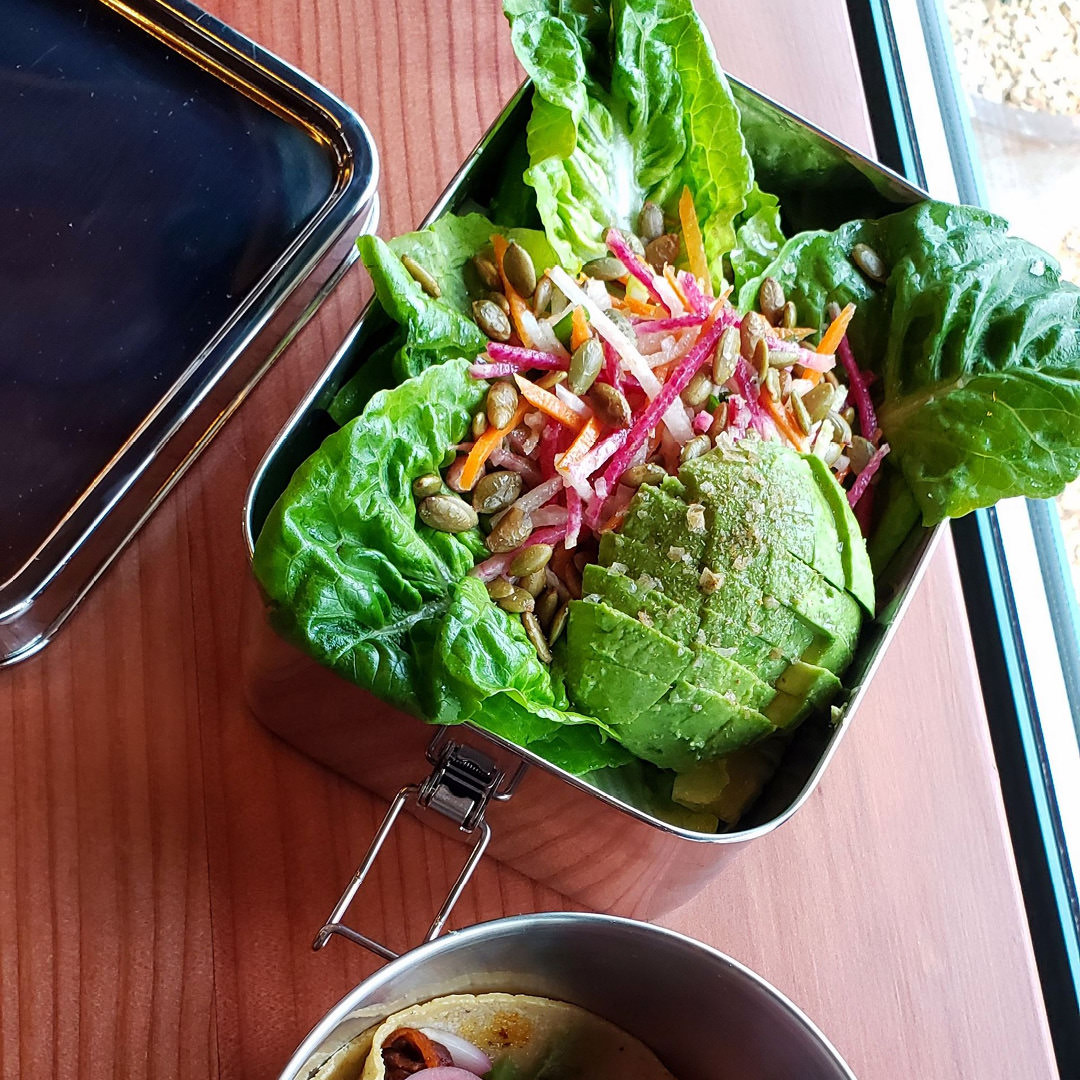 Lekkasjesikker matboks i stål, perfekt til salater, gryter og “våt” mat.