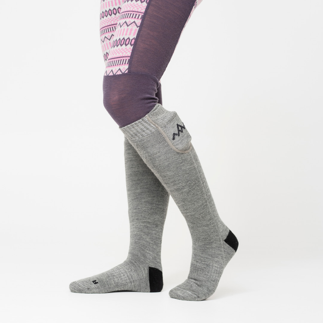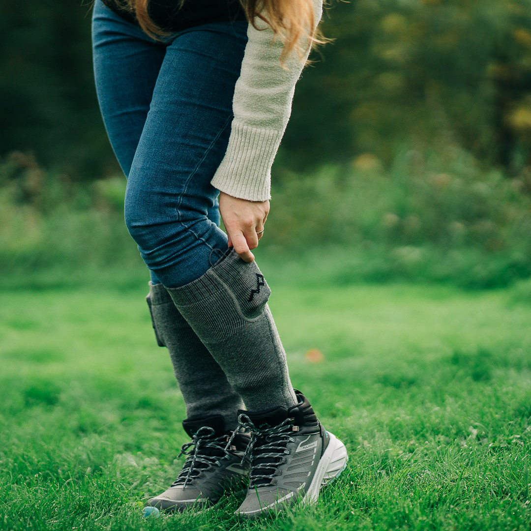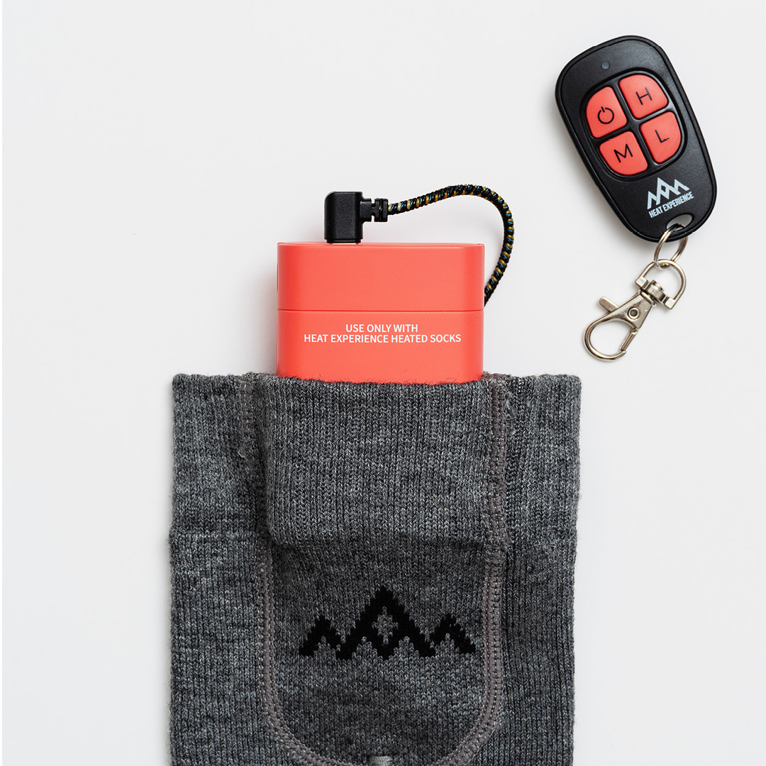 HeatX Heated Everyday Socks er sokker med varmeelementer som holder føttene dine varme i opptil åtte timer. Sokkene er laget i en god ullblanding som isolerer mot kulde og transporterer fuktighet vekk fra huden. Du kan velge mellom tre ulike varmenivåer med en fjernkontroll eller en knapp på batteripakken. Sokkene har en anatomisk utforming som følger fotens fasong og sikrer en stram og komfortabel passform over tid. Sokkene kan vaskes i maskin (uten batterier) og har to års garanti.