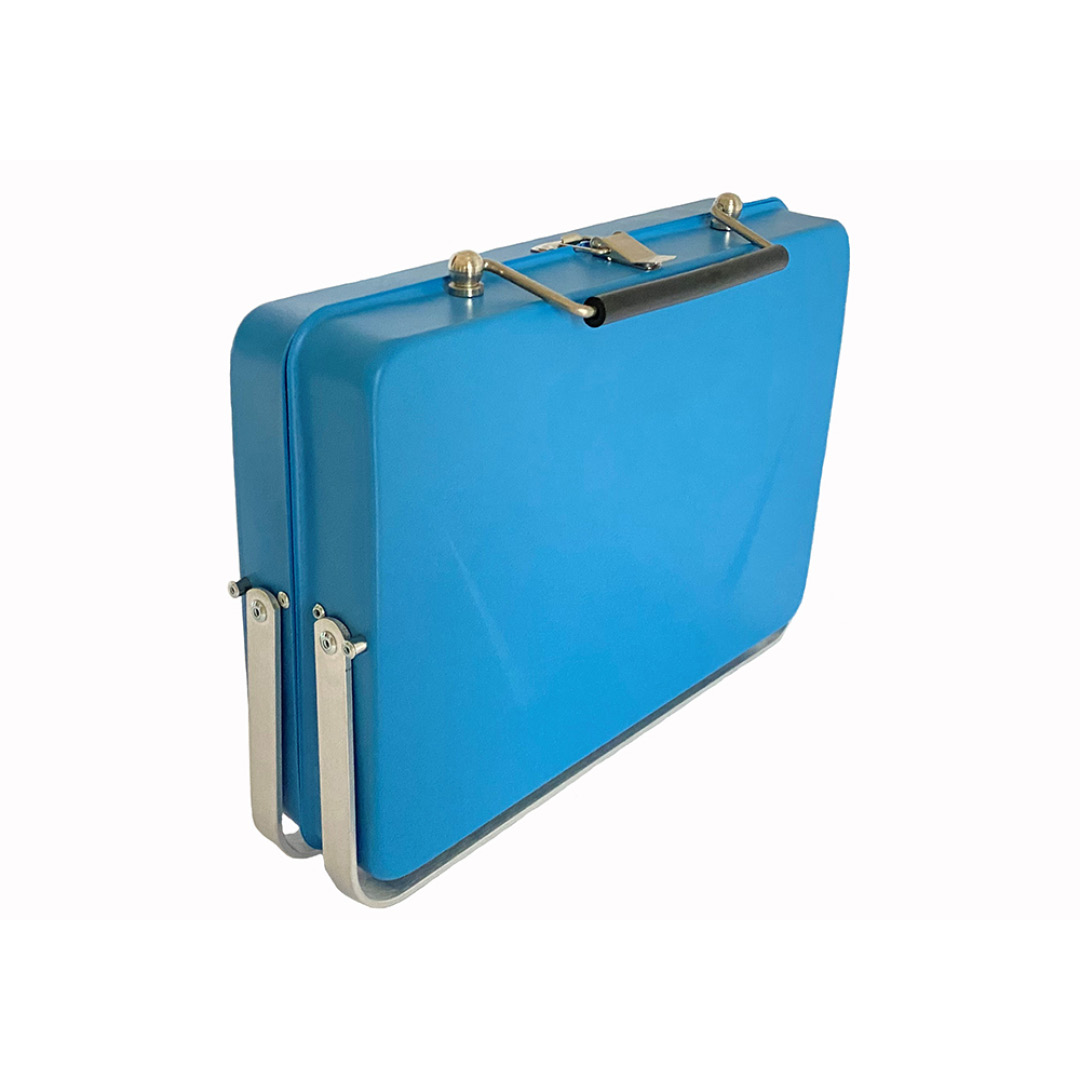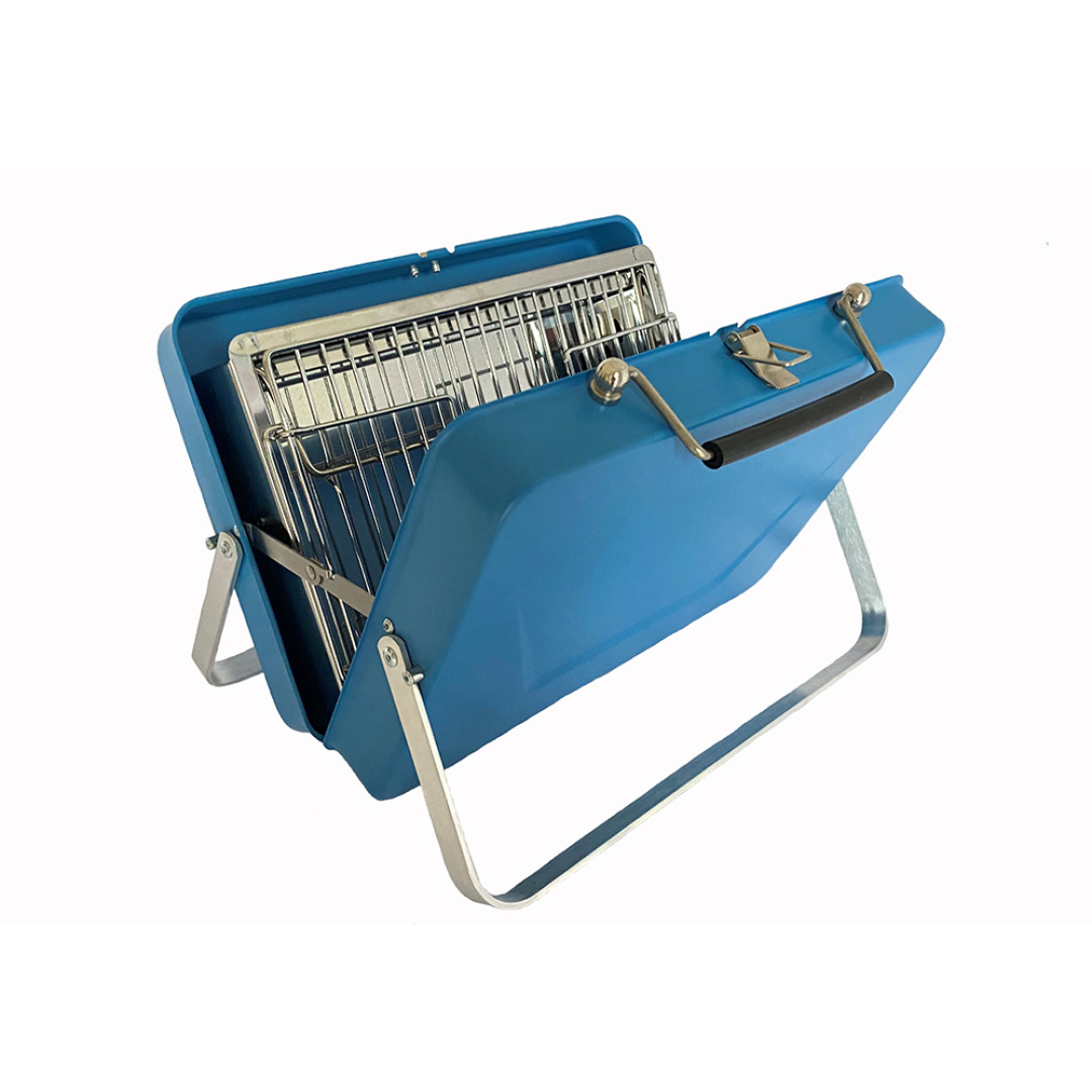 Grillen legges enkelt sammen etter bruk og kan oppbevares som en kompakt koffert. Dette gjør den lett å ta med i bilen, sekken eller oppbevare hjemme uten at den tar mye plass.