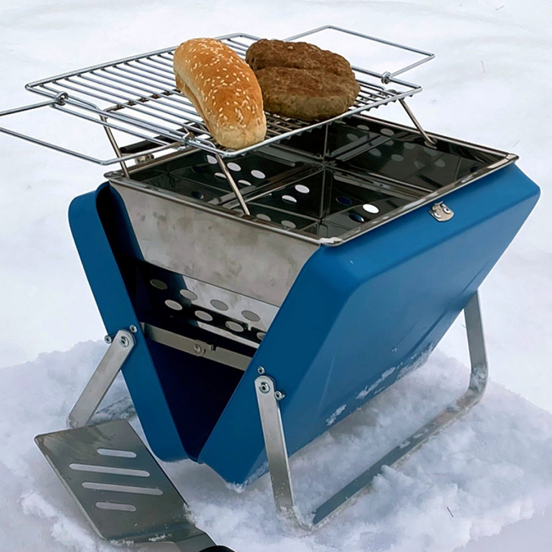 En sammenleggbar kullgrill som gjør det enkelt å grille hvor som helst.