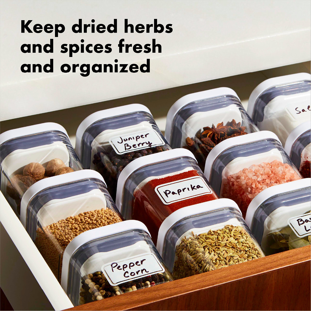 OXO POP Mini Container sett er en smart løsning for deg som ønsker bedre orden på små ingredienser. Disse kompakte boksene er spesielt utviklet for oppbevaring av krydder, urter og andre tørre varer som fort blir uoversiktlige i kjøkkenskapet.