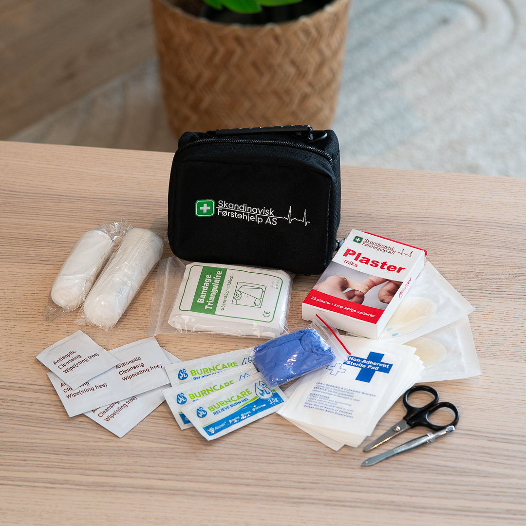 Denne lille førstehjelpspakken passer for alle som liker å være litt føre var. Den er spesielt nyttig for deg som ofte er på farten, enten du går tur i skogen, er på hytta, reiser, har barn i aktivitet eller bare ønsker et praktisk sett i bilen.