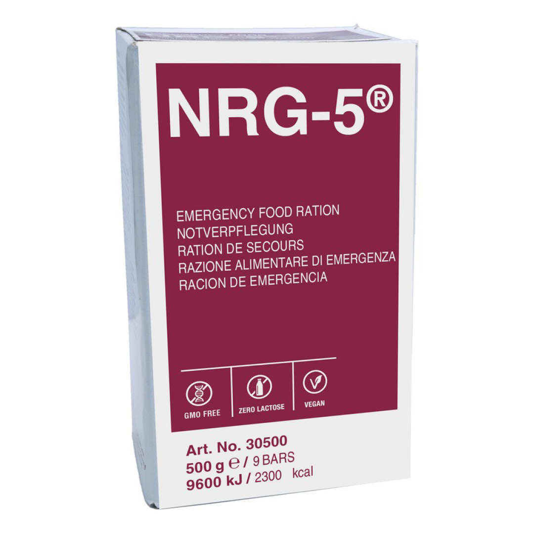NRG-5® er også beriket med vitaminer og mineraler. Allerede ved 100 gram dekker produktet 20 % av dagsbehovet for flere viktige vitaminer, blant annet A, D3, E, C og B12, i tillegg til mineraler som magnesium, kalium, fosfor, jern og kalsium. Dette gjør at den ikke bare gir energi, men også bidrar med næring kroppen trenger i en krevende situasjon.