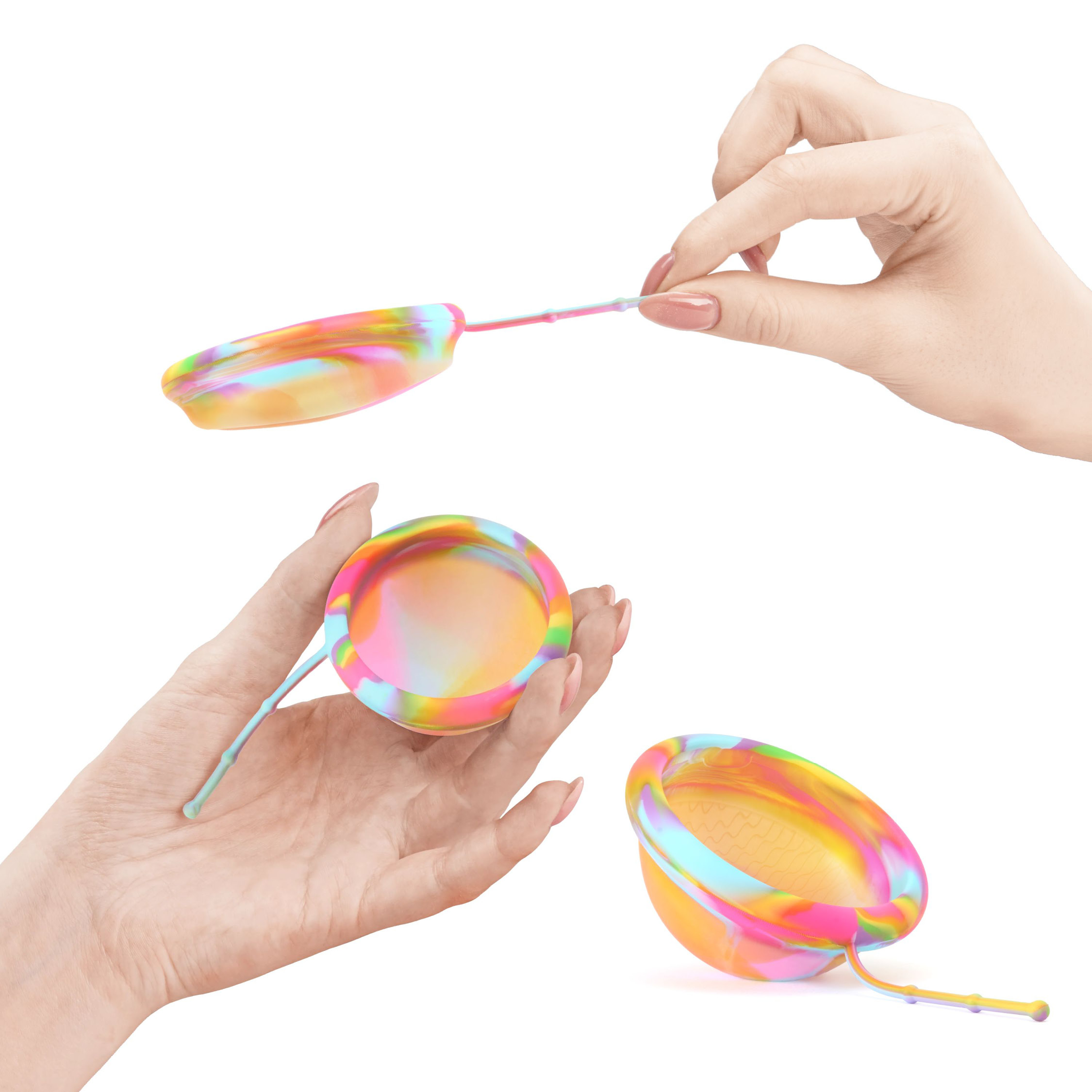 Bodyotics ComfyDisc i regnbuefarger er en gjenbrukbar mensdisk utviklet for komfort og fleksibilitet gjennom hele syklusen. Disken plasseres ved livmorhalsen og samler opp menstruasjonsvæsken i stedet for å absorbere den. Resultatet er en løsning som mange opplever som mer komfortabel og diskret enn tradisjonelle bind og tamponger.