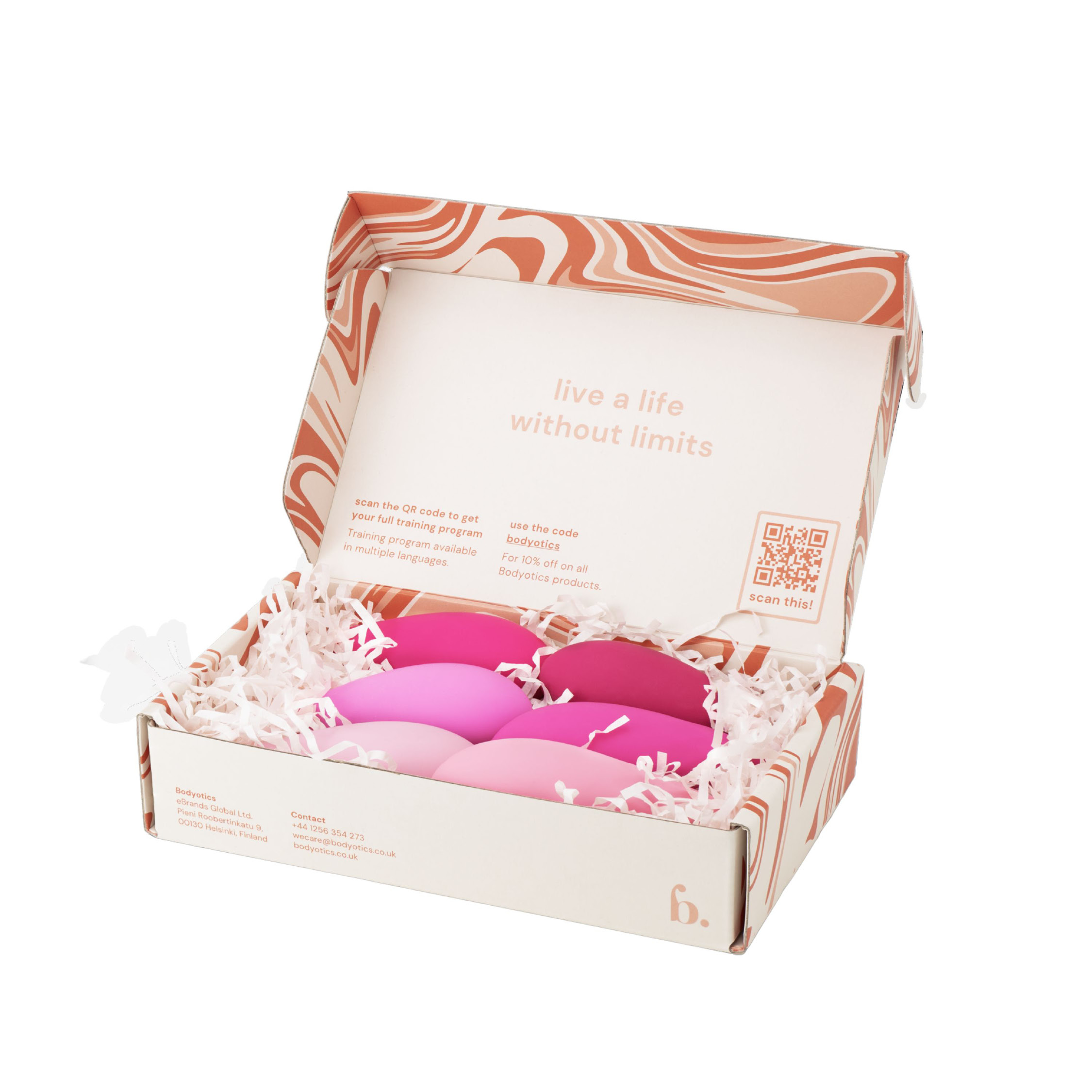 Bodyotics vaginalvekter er utviklet for å gi en enkel og fleksibel måte å trene bekkenbunnen på. Settet inneholder seks vekter med gradvis økende tyngde, slik at du kan starte forsiktig og tilpasse treningen etter hvert som du blir mer komfortabel. Denne typen trening brukes ofte for å øke kroppsbevissthet og styrke muskulaturen i bekkenområdet.
