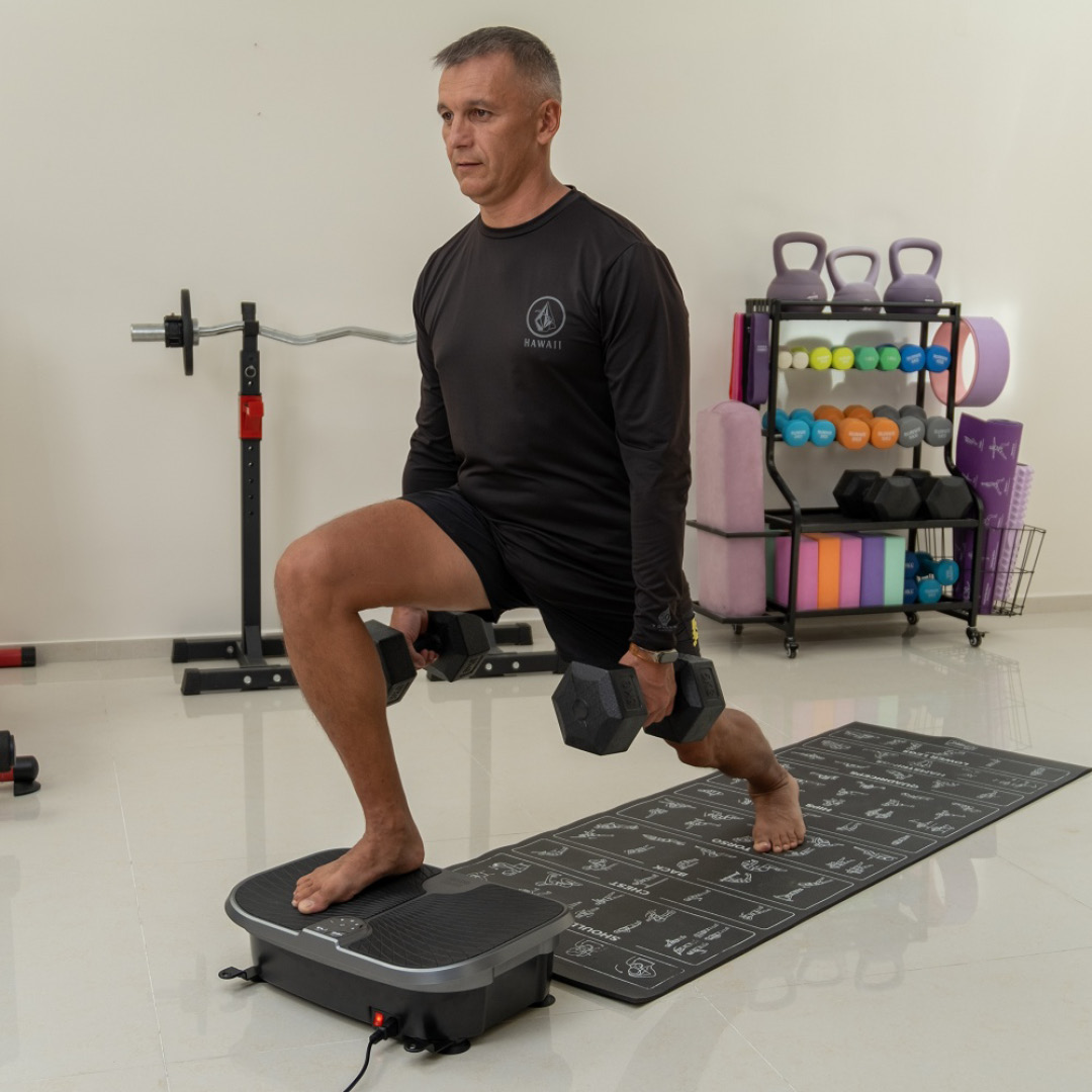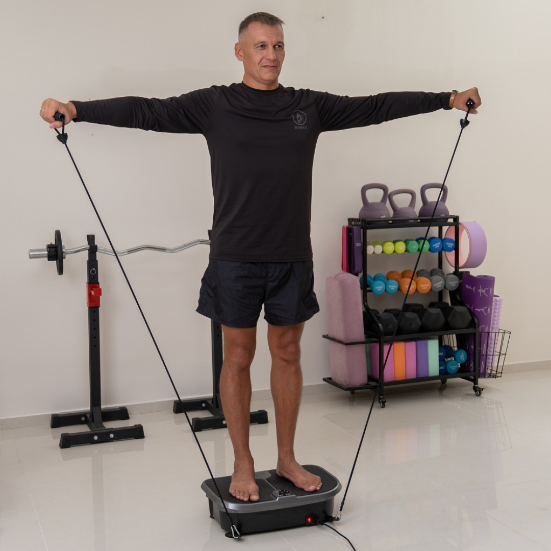Du står enkelt på platen mens den sender små, raske vibrasjoner gjennom kroppen. Disse vibrasjonene får musklene til å jobbe automatisk, nesten uten at du merker det selv.
